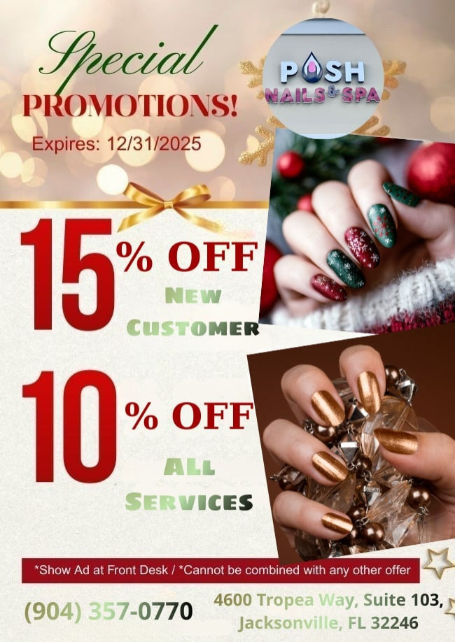 We are the 1st & only nail bar in the area with exceptional customer service and quality nail care. Book an appointment with us today for your next POSH spa experience.